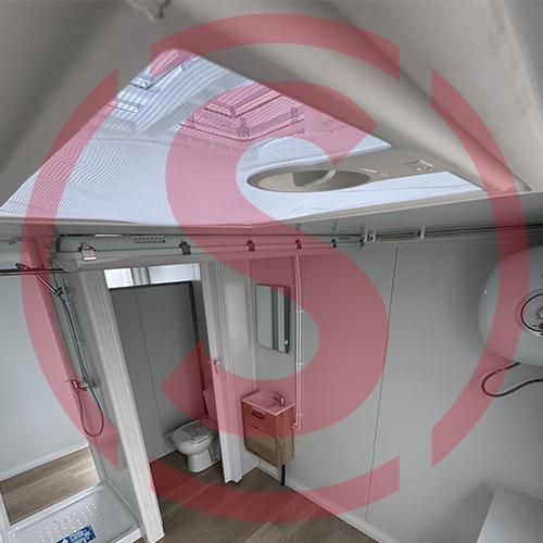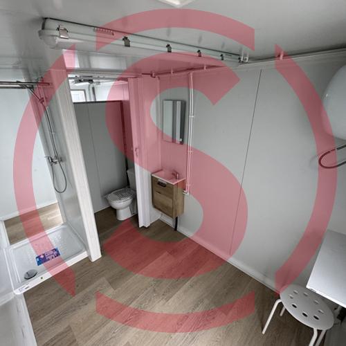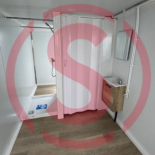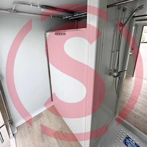 Vestuario sanitario para el personal con acceso a la granja. Cuenta con todas las medidas para cumplir con la normativa del Real Decreto 306/2020, de 11 de febrero de bioseguridad.