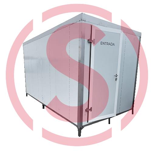 La estructura fabricada en Acero Inoxidable AISI 304. La estructura incorpora 6 puntos de anclaje al suelo, 1 por cada esquina y patas centrales para mantener la estabilidad en el interior.